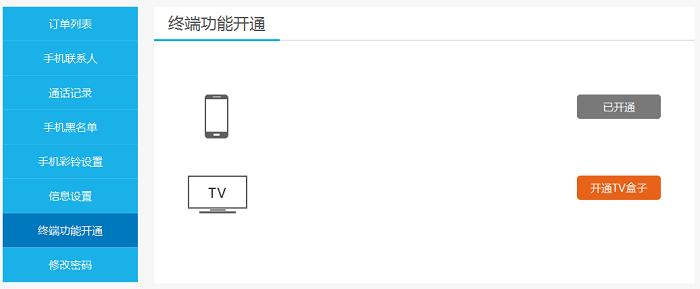 (1)进入【用户中心】→点击左侧【终端功能开通】→选择【开通我的手机】