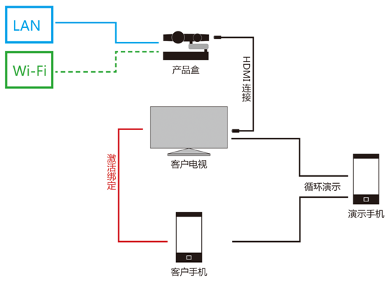 手机端绑定TV端后,视频通话过程中可将画面切换至TV端电视上,这也是我公司的独有技术,具有转换快速、画面清晰的特点。