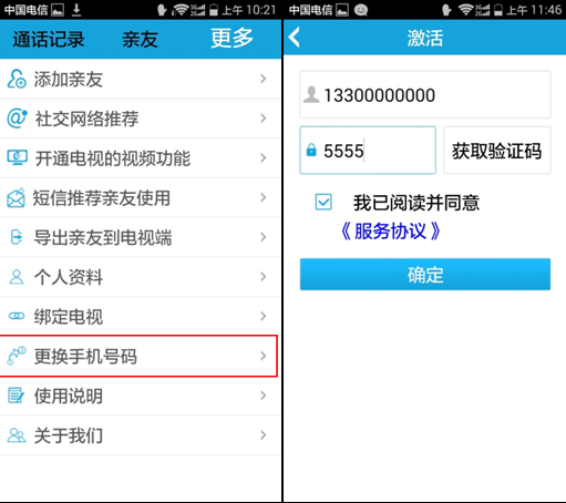 和家购APP可以更换使用号码,选择【更多】->【更换手机号码】,填写相关信息验证后激活新号码。