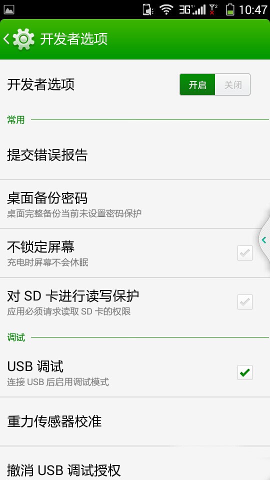 5. 至此,开发者选项显示,USB调试打开,再安装驱动或使用豌豆荚连接手机自动识别安装驱动,与电脑连接就没有问题了。