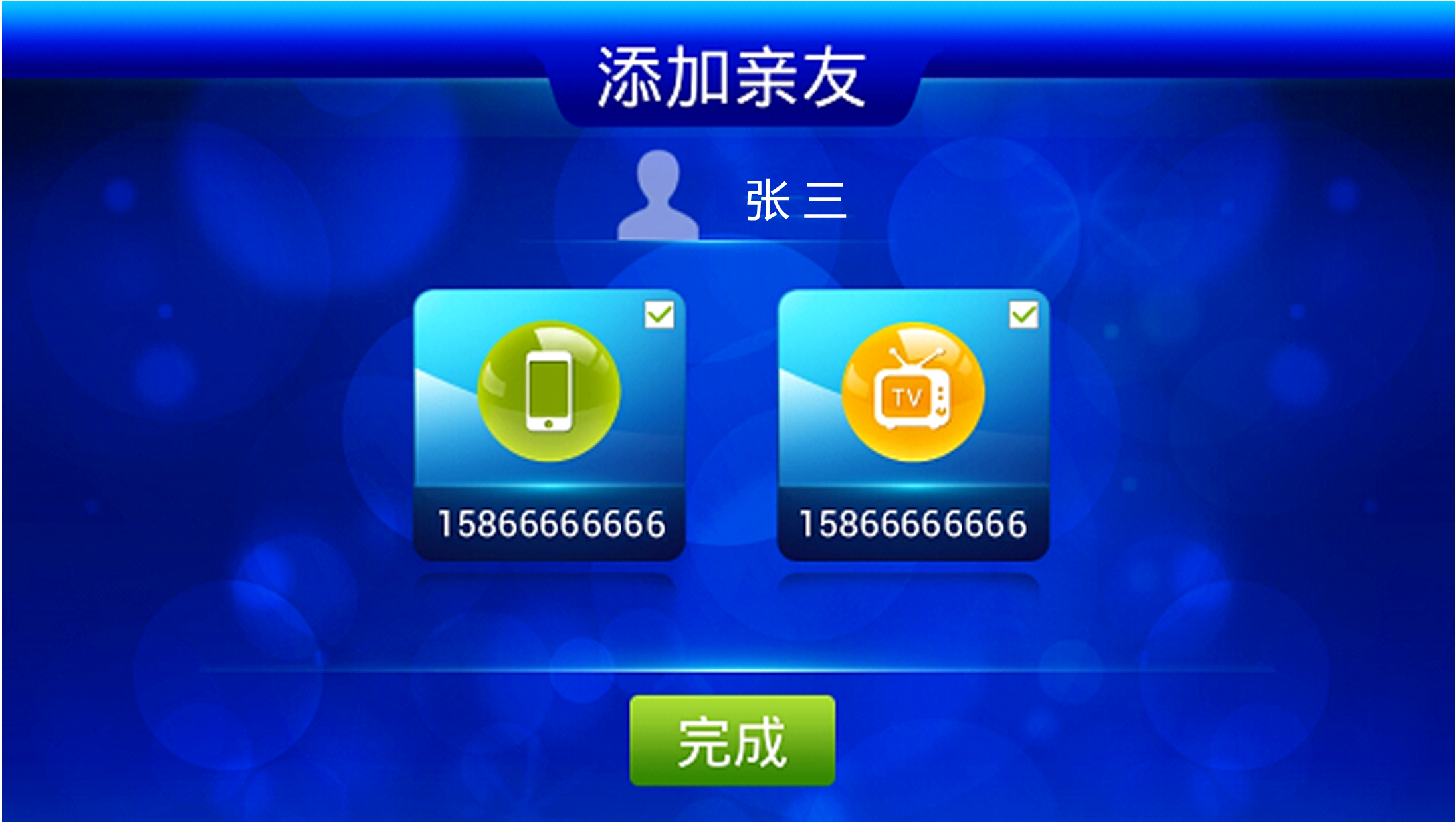 3、选中对应号码(可选TV端及手机端),点击【完成】。