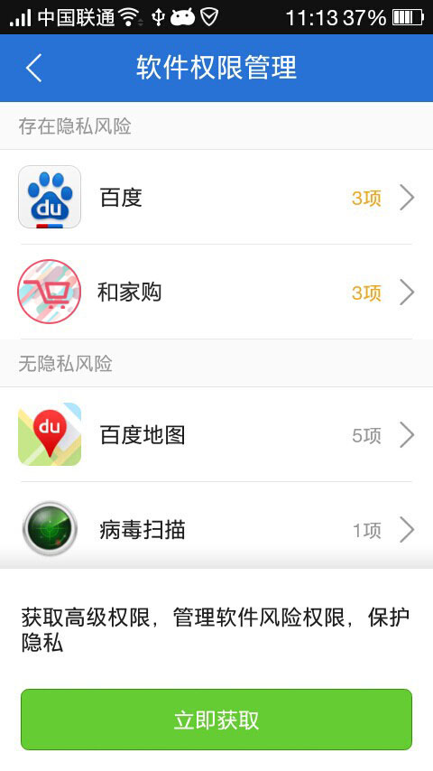 5.进入和家购软件权限详情,如显示是“未信任”状态则点击该按钮